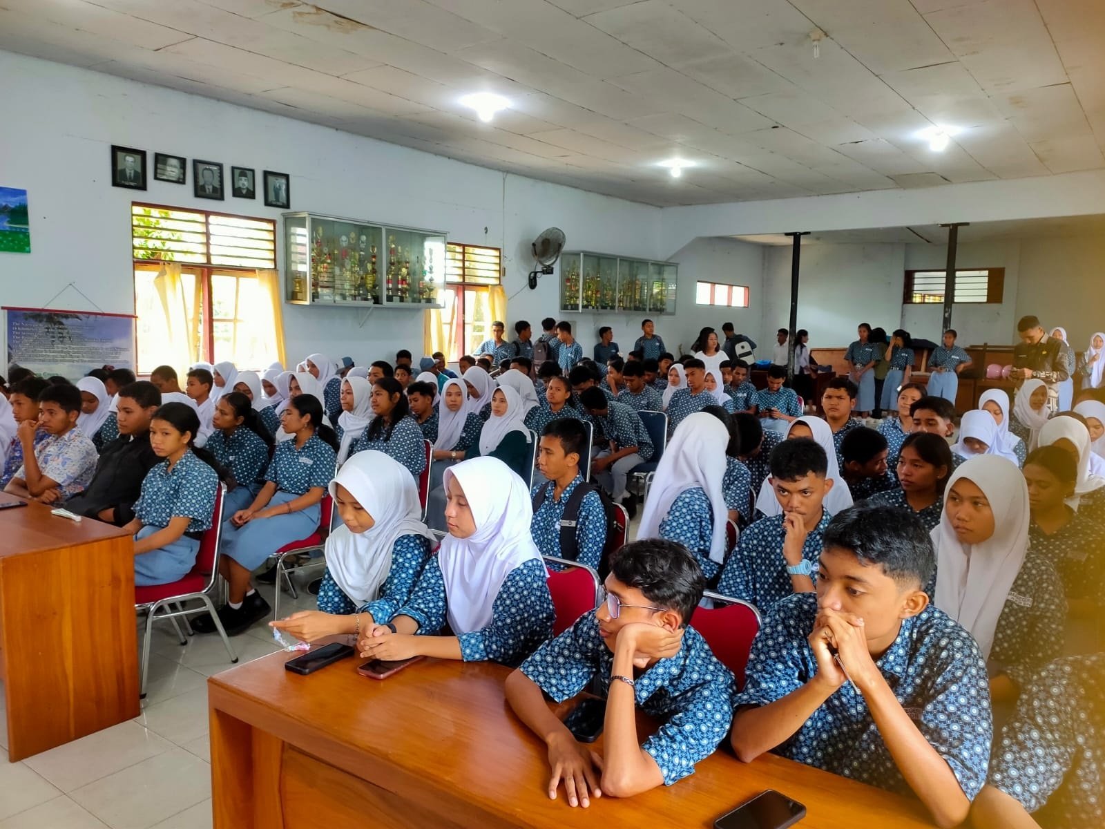 Kegiatan yang digelar di gedung Serba Guna SMAN 3 Ambon, Rabu 27 Agustus 2025 diisi oleh Kepala Bidang Pendidikan Agama dan Keagamaan Islam (PAPKIS) Kanwil Kemenag Maluku, H. Abdul Karim Rahantan, S.Ag., MH. Ia menekankan pentingnya menanamkan nilai moderasi sejak dini.